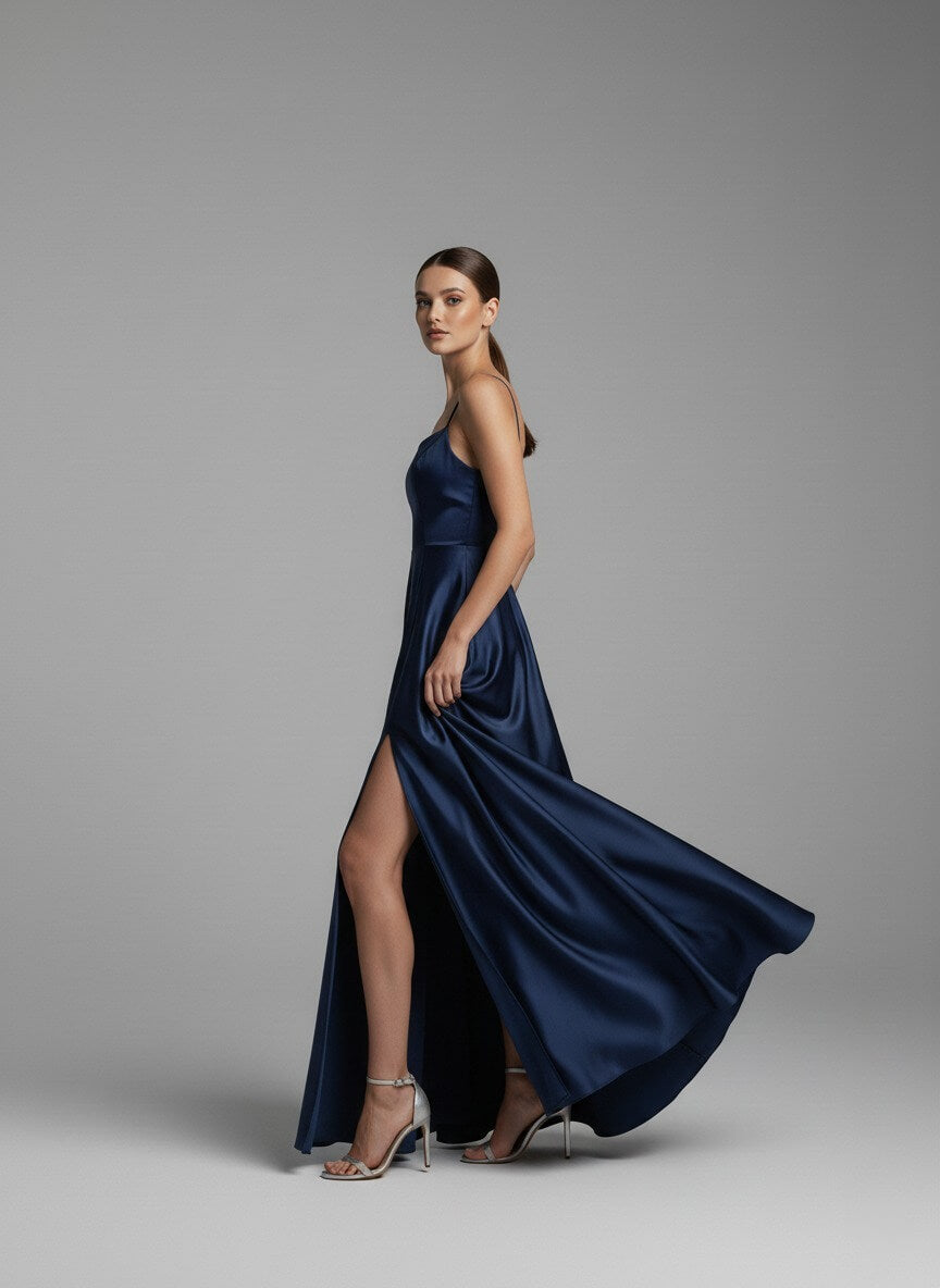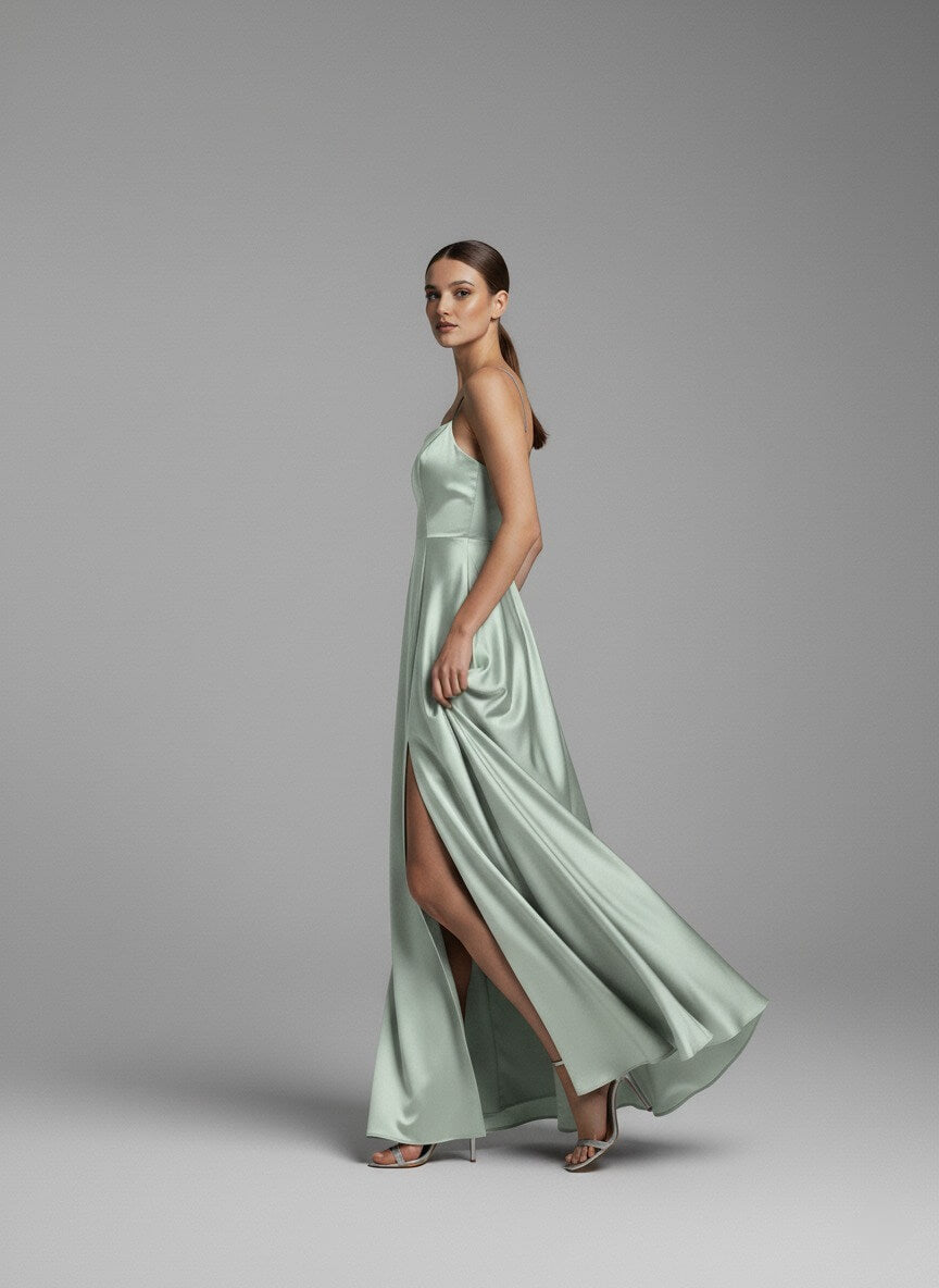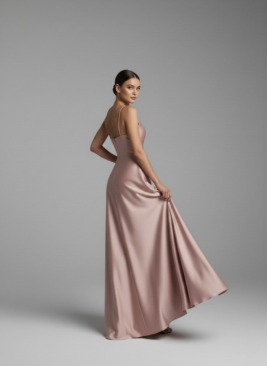 Make a statement with the Velour Rouge Satin Maxi. Crafted in luxurious floor-length satin with subtle stretch, this dress features adjustable spaghetti straps and a flowing silhouette that combines festive glamour with modern ease.